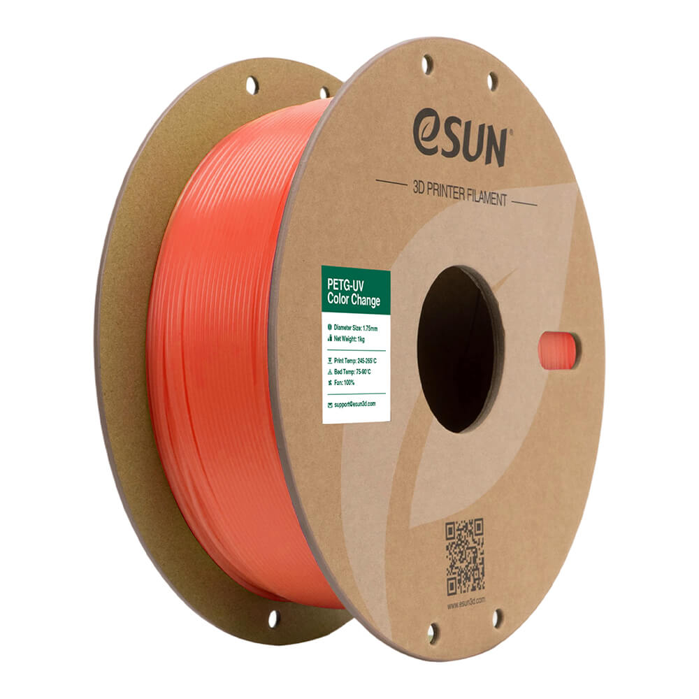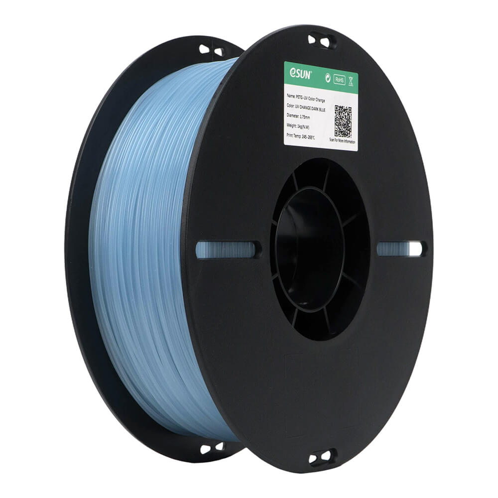 PETG光变(PETG-UV Color Change)线条在传统PETG线材基础上融入光感变色特性,经紫外线照射后可自发产生丰富色彩变化,视觉趣味性显著提升。线材延续了PETG优异的打印流畅性,挤出稳定、层间结合力强,成品表面细腻光泽,同时保持了PETG材料本身的强度与韧性。